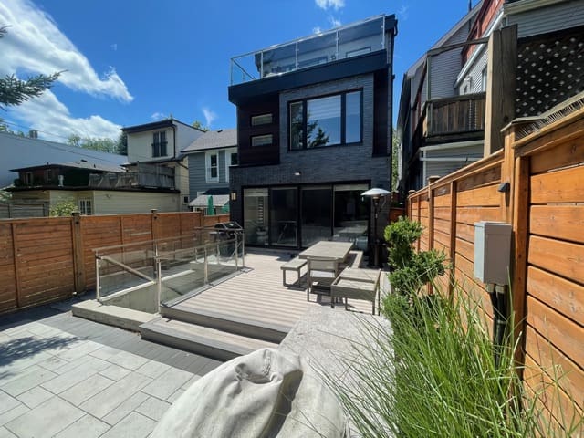 Luxury, style and designed for ultimate Beach living south of Queen. This custom-built 3-storey home spans approximately 4,000 square feet of exquisite living space. Built in 2019, and recently enhanced with over $300,000 in interior and landscaping upgrades. Every detail has been carefully curated for modern, functional living. Step inside to a bright, open main floor made for effortless entertaining. A formal front dining area impresses with statement lighting and a custom built-in bar with wine and beverage fridges, the perfect setting for gatherings. The chef’s kitchen features a waterfall island with breakfast bar seating, a Vogt stainless steel double sink, reconfigured cabinetry, and top-of-the-line appliances, including a Wolf 6-burner gas stove, Fisher & Paykel fridge, Miele dishwasher, and Sharp built-in microwave. The adjoining family room centers on a gas fireplace and opens to the backyard oasis with floor-to-ceiling sliding doors, ideal for indoor-outdoor living. The professionally landscaped backyard is complete with a composite deck, hot tub, and outdoor kitchen for al fresco dining. Upstairs, three generous bedrooms offer abundant closet space, two beautifully finished bathrooms, and second-floor laundry and sink for added convenience. Ascend to the third-floor primary retreat, a true sanctuary with private ensuite featuring a freestanding tub, double vanity, and oversized shower. An arched doorway with pocket doors leads you into the incredible custom walk-in closet with center wardrobe island, and glass-front built-ins. Not one, but two private balconies overlook the front and back yards! An in-suite A/C completes the primary bedroom, offering supplementary cooling for ultimate comfort. The lower level impresses with high ceilings, an expansive second family room with glass sliding doors, walk-up access to the backyard, an additional bedroom or gym, a 5-pc bathroom, and a dedicated laundry room with folding counter and wall-mounted drying racks. Outside, the interlocking stone driveway accommodates multiple vehicles and is legally licensed for two. Adding to the functionality and appeal is a built-in storage shed to keep bins neatly tucked away, and year round green turf. All of this, just steps from the Beach and Boardwalk, Kew Gardens, Queen Street shops, restaurants like local favourites Limon and The Stone Lion, and public transit. Kew Beach Junior, Glen Ames Senior school district. This exceptional home is the ultimate combination of luxury, lifestyle and location, where every day feels like a getaway.