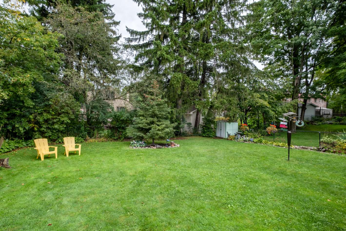 Sought after lot and location! Substantial 60 x 125 foot rectangular lot: surrounded by canopy of neighbouring trees framing its perimeter. The backyard offers seclusion and is a pristine canvas, clear of trees for future development. Long time owners renovated the kitchen and baths, and added a main floor family room addition with in-floor heating and sliding doors to deck, overlooking a private, natural setting. Updated mechanics, ample storage and a finished rec room with 3 p. bathroom, laundry, and home office could be 3rd bedroom. Long private drive for multiple cars and garage/workshop. Close proximity to schools, parks, shops, TTC & Eglinton GO train station.