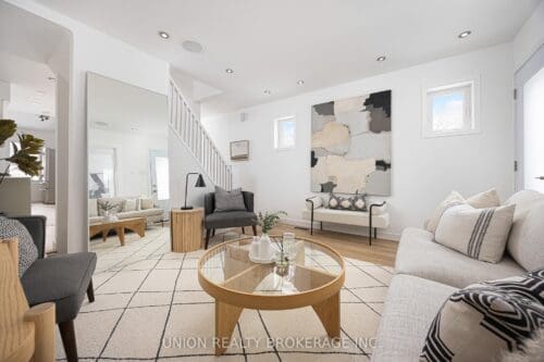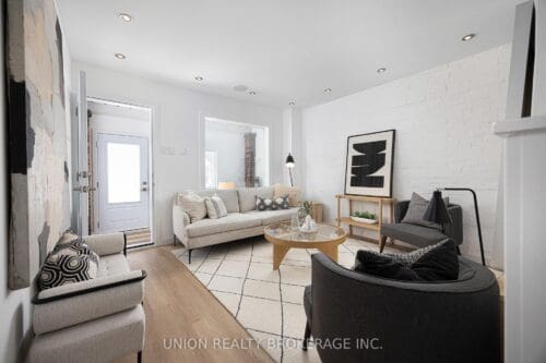 Beloved Bastedo! Welcome to this beautifully updated corner-lot gem that perfectly blends character, comfort, and modern style. Step through the cozy enclosed front porch – the ideal spot to stash all your Canadian winter gear and into a warm, inviting living space where exposed brick meets brand-new luxury vinyl flooring for a seamless mix of charm and contemporary living. The spacious dining room flows effortlessly into the thoughtfully updated kitchen, featuring a stunning tile backsplash, stainless steel appliances, and abundant storage. Upstairs, you’ll find two stylish bedrooms, each with closets & hardwood floors & an updated 4-piece family bathroom. The fully finished basement adds exceptional flexibility, offering the perfect space for a third bedroom, home office, or rec room. It also features a brand-new powder room, stacked washer/dryer, and wall-to-wall closets to handle all your storage needs.The true cherry on top: rare two-car (tandem) parking on the right-of-way driveway. Bathed in natural light thanks to its premium corner position with no neighbour beside, this lovingly-maintained, turnkey home sits within a safe, tight-knit community ideally sandwiched between the Beach and Leslieville, and just a short stroll to Danforth shopping and the TTC. If you’ve been waiting for the perfect move-in-ready home at an excellent price point, this is the opportunity for you!