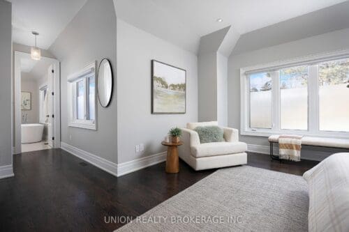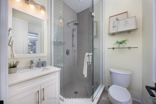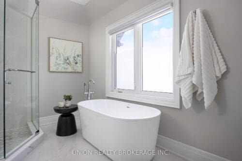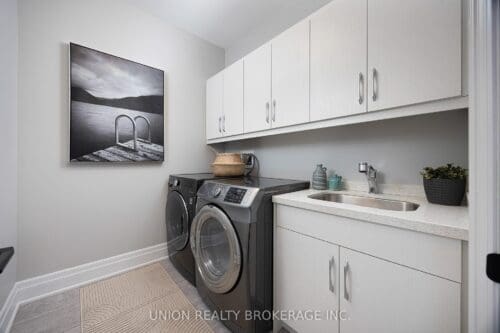 Custom built Bluffs home spanning over 4,000 sq. ft. of luxury! Set back on a generous 50 foot frontage, with landscaped grounds, an interlocked stone driveway offering ample parking, and a double car garage with epoxy flooring. Step into this pristine residence boasting thoughtful design, detailed millwork, and quality craftsmanship throughout. The welcoming foyer entry with high ceilings, elevates the home’s interior appeal, opening up to an elegant living and dining area with ample closet space and a main floor powder room. The exquisite gourmet kitchen overlooks a main floor family room with a walkout to serene views of the private backyard providing an outdoor retreat, complete with composite decking, a retractable awning, SwimSpa, glass railings, and lush, low-maintenance landscape. Convenient direct access to the home from the garage, a separate side entrance that walks down to the completely finished lower is perfect for an in-law suite with an extra bedroom, or an extension of luxury living and entertaining. The upstairs landing is sun-filled with a skylight and leads to four spacious bedrooms including a grand primary, each with ensuite or semi-ensuite bath. A second-floor laundry room adds functionality and simplicity. Notable upgrades include a whole-home generator, advanced security and camera system, programmable lighting, central vac, triple sump pump with battery backup, and high-capacity HVAC. A rare opportunity to enjoy a peaceful, nature-filled lifestyle just steps to parkland and tennis courts. Minutes to Rosetta McClain Gardens, Kingston Road amenities, and top-rated schools including Chine Drive PS and R.H. King Academy.