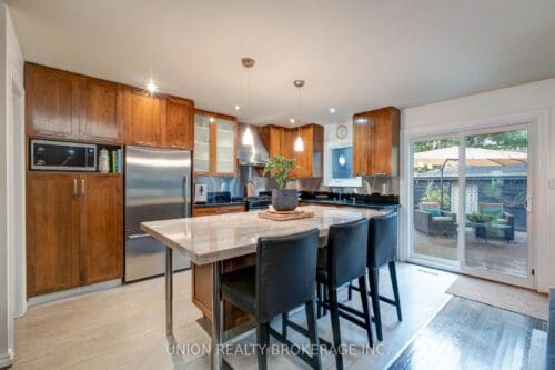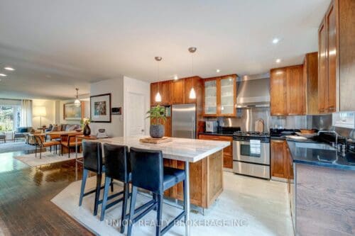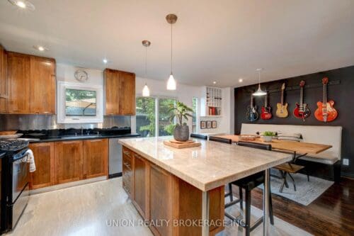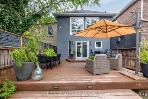 Fabulous fully detached home in the sought-after Leslieville Pocket enclave. Bright & spacious home has been extensively renovated with quality finishes, great flow, and a welcoming vibe. Main floor has hardwood floors, fireplace and sizeable principal rooms, with a powder room and gorgeous gourmet kitchen combined with eat-in area or main floor family room – a dream for cooking and entertaining. Upstairs features new solid hickory hardwood, a generous primary bedroom with spa bathroom and large closet, plus 2 additional bedrooms and full bath. Fantastic basement rec room with high ceilings, a wet bar, bathroom, laundry and ample storage – a terrific family space. Lovely front landscaping and a private backyard with large deck and patio, perfect for summer nights with friends & family. Rare 2 car garage with space for storage! A wonderfully maintained turnkey home. Incredible location in a vibrant, family-friendly community, steps from the bustling Danforth, shops, restaurants, schools, parks and TTC. The best of City living!