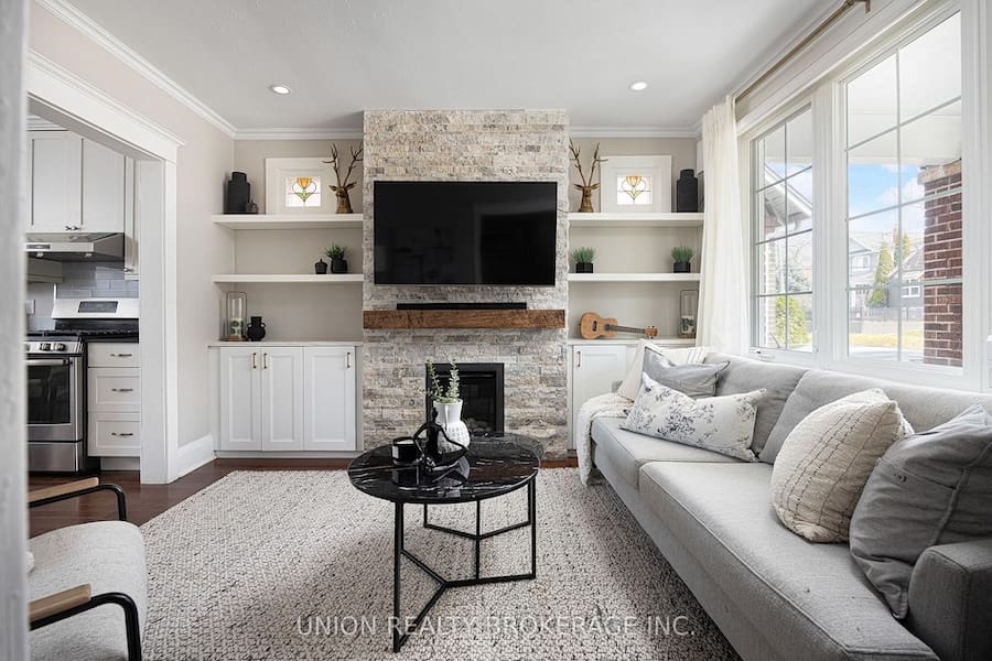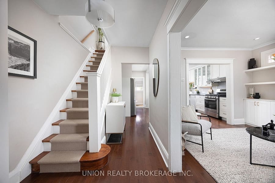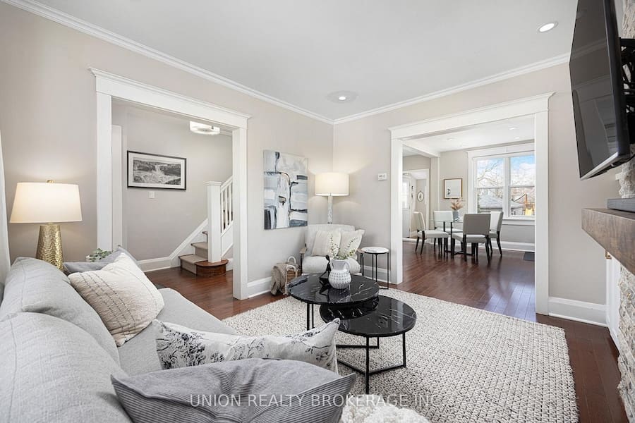 Welcome to this charming two storey detached home on Queensbury, offering 3 bedrooms and 3 bathrooms on an impressive 181′ deep lot. Thoughtfully updated, the main floor features 8′ ceilings, a bright open-concept layout, main floor powder room, practical mudroom at the rear of the home for added functionality and a renovated kitchen that overlooks a meticulously landscaped backyard, complete with over $50K in upgrades, creating a truly beautiful outdoor retreat. The inviting living room is anchored by a cozy gas fireplace, perfect for relaxing or entertaining. Upstairs, you’ll find three well proportioned bedrooms with 7’6″ ceilings, including a spacious primary bedroom with a double-wide closet. Walk down to the finished basement that has an additional bathroom, a dedicated storage room, and 6’7″ ceiling height ideal for additional living or utility needs. This home also offers two-car parking and a detached 20′ x 12′ garage, outfitted with shelving for excellent storage (not presently used for parking). This home blends comfort, smart layout, and outdoor beauty-perfect for families or anyone seeking a move-in-ready space with room to grow.