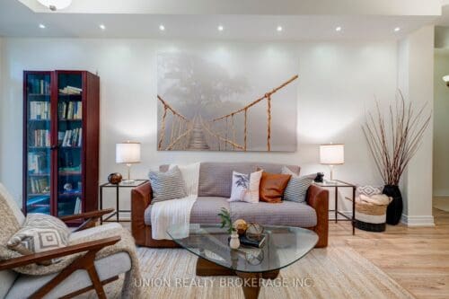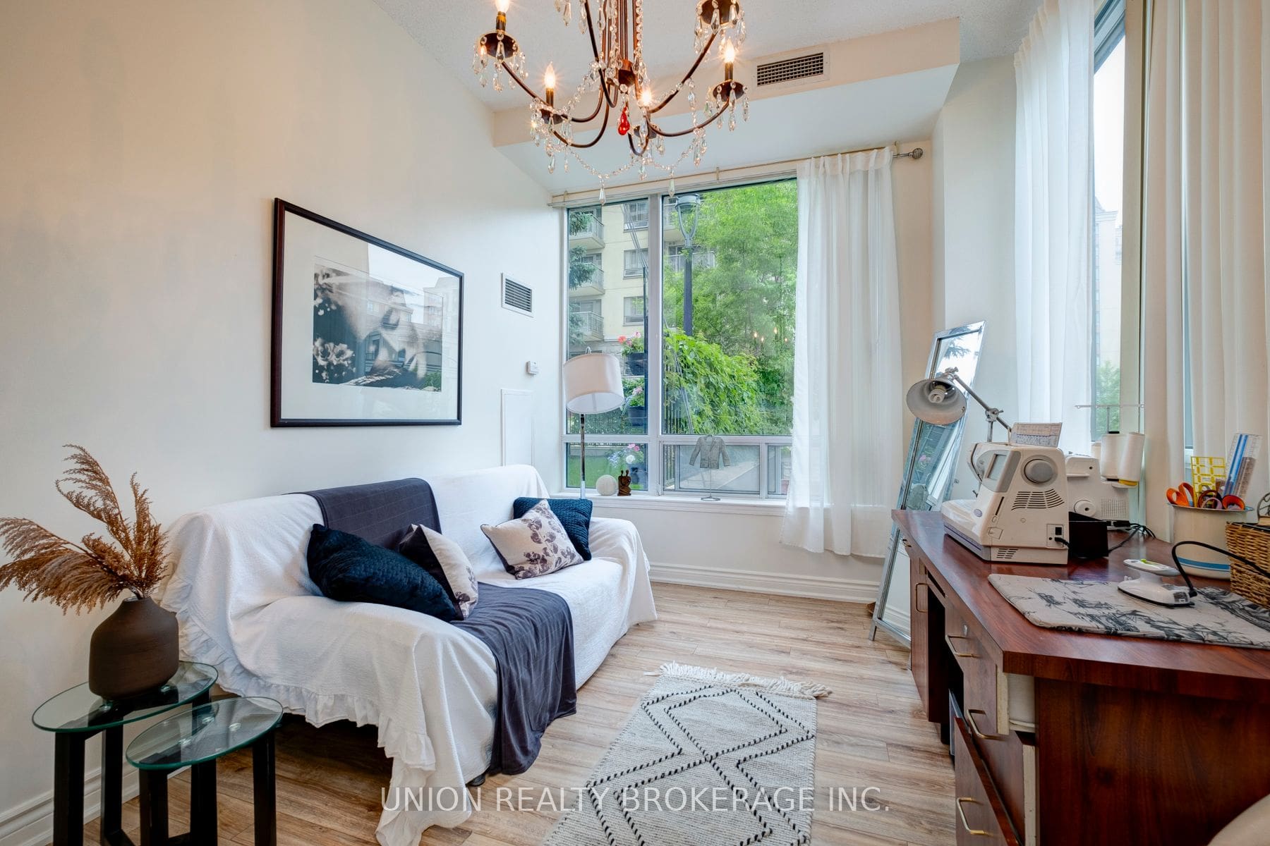 Stunning light-filled elevated ground-level corner suite at the desirable New York Towers Waldorf! Originally a two-bedroom (seller willing to restore original wall) you can experience the soaring 10-foot ceilings and abundance of natural light from the incredibly tall windows in every room. With two walkouts to private grassy landscaped gardens, it’s easy to enjoy condo living in the city. It is located on the main floor so no waiting for the elevator, freshly painted and two bathrooms. The condo offers its residents amenities such as a gym/exercise room, pool, concierge and a party room. Other amenities include guest suites, a meeting/ function room, a parking garage, a sauna, a security guard and an enter phone system. Local amenities include a less-than-minute walk to TTC, Bayview Village Mall, Rean Park and a YMCA. Short distance to MEC and Ikea!